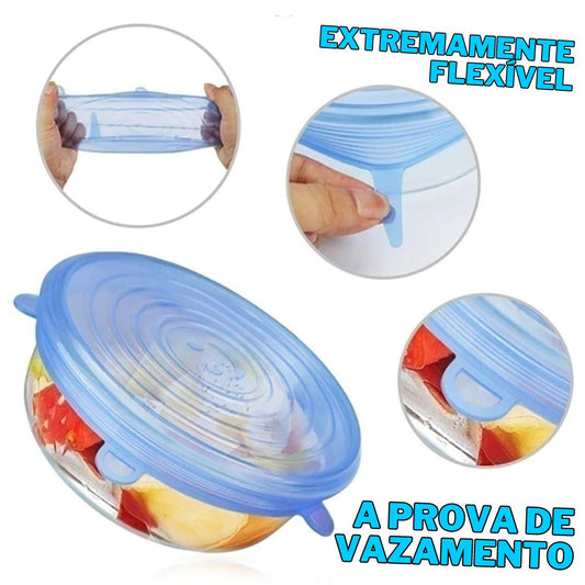 Compre 6 Leve 12 - Kit 12 Tampas de Silicone Reutilizável (UNIVERSAL) - Super Elástico
